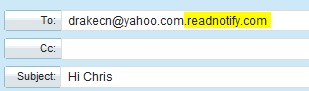 For free trial users please add your tracking manually. To do that simply compose your email as usual in your own email program, then type   .Certified-Email.com   on the end of your recipients email address (they won't see this). Like this: